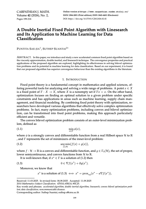 / A Double Inertial Fixed Point Algorithm with Linesearch and Its Application to Machine Learning for Data Classification
