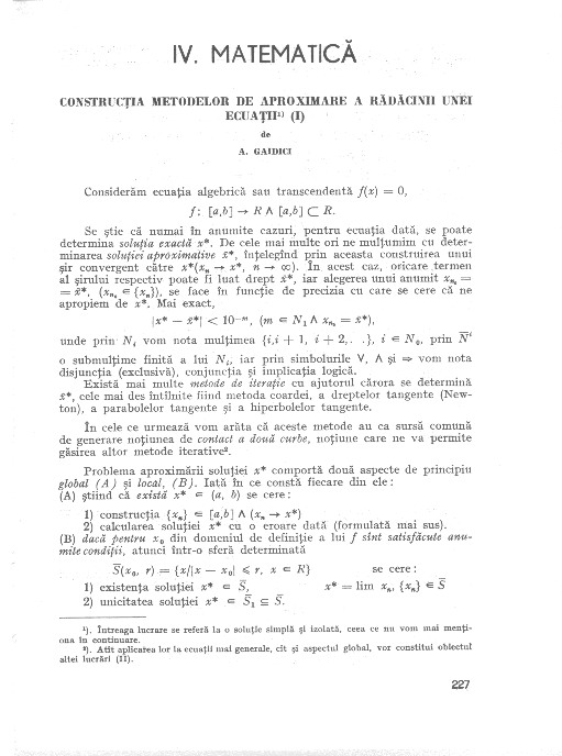 / Constructia metodelor de aproximare a radacinii unei ecuatii (I)