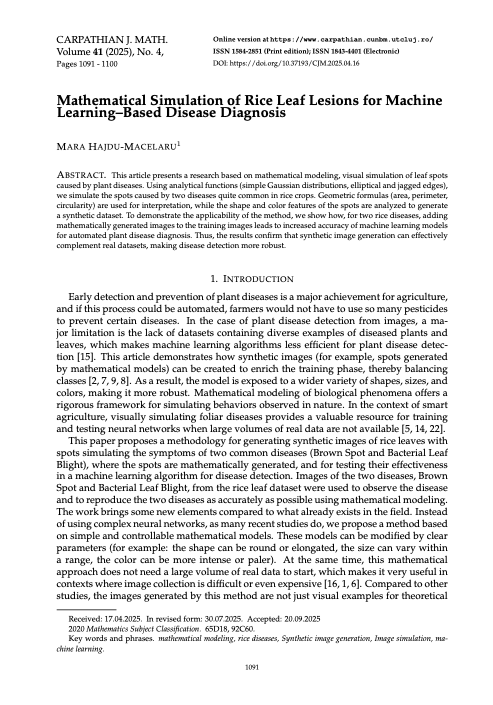 Mathematical Simulation of Rice Leaf Lesions for Machine Learning–Based Disease Diagnosis