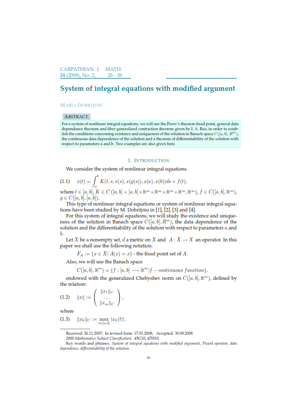 For a system of nonlinear integral equations, we will use the Perov's theorem fixed point, general data dependence theorem and fiber generalized contraction theorem given by I. A. Rus, in order to establish the conditions concerning existence and uniqueness of the solution in Banach space C([a; b];Rm), the continuous data dependence of the solution and a theorem of differentiability of the solution with respect to parameters a and b. Two examples are also given here.